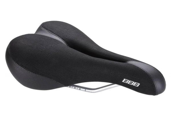 Selle sportive avec découpe anatomique pour une utilisation avec des vêtements de loisirs ou tenue de cycliste.